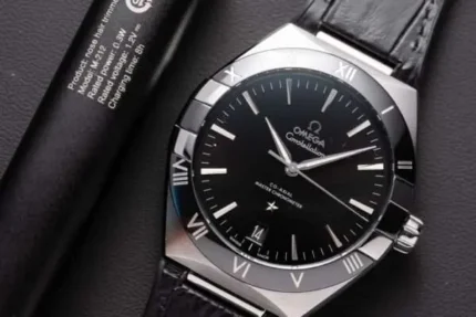 Omega Constellation Watch Black Dial Leather Strap 42mm