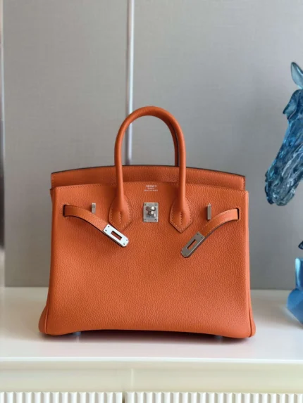 Hermes Birkin 25 Orange Togo Leather Palladium Hardware