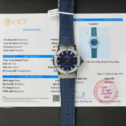 Hublot Classic Fusion Titanium Dial Blue Replica Watch Custom Moissanite Diamonds 33mm