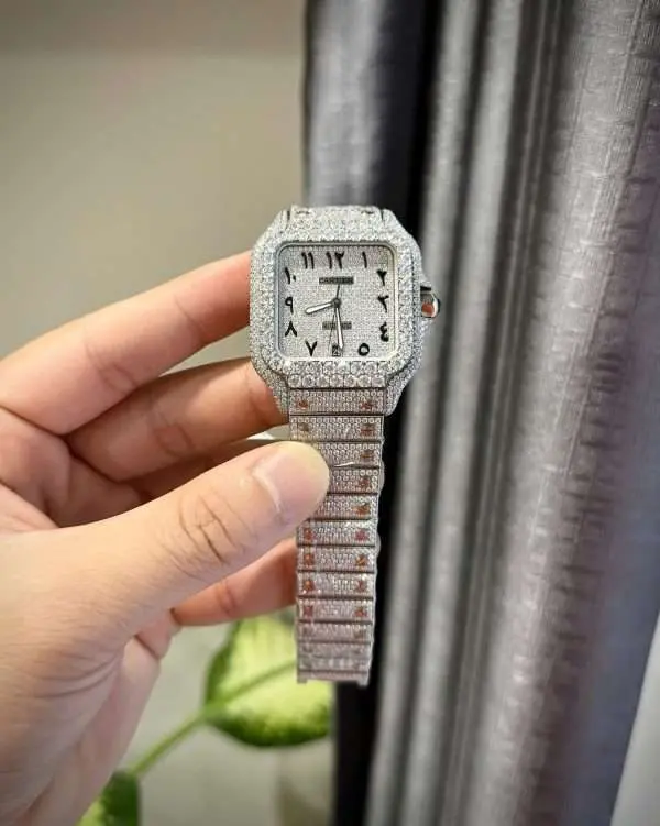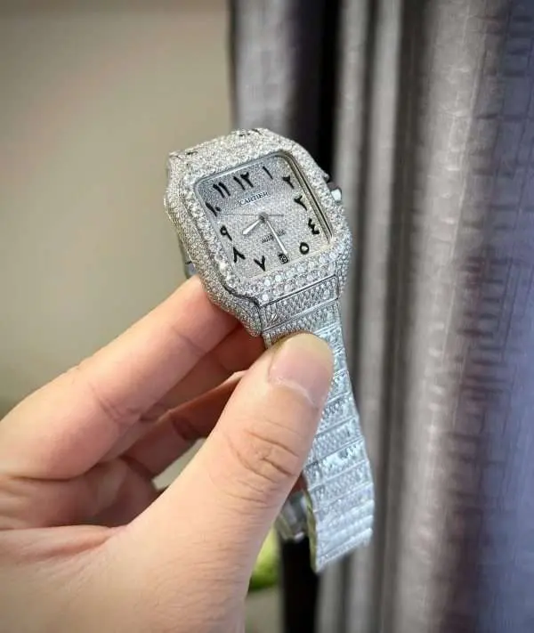 Cartier Santos Custom With Full Diamond Moissanite Hong Kong 35mm