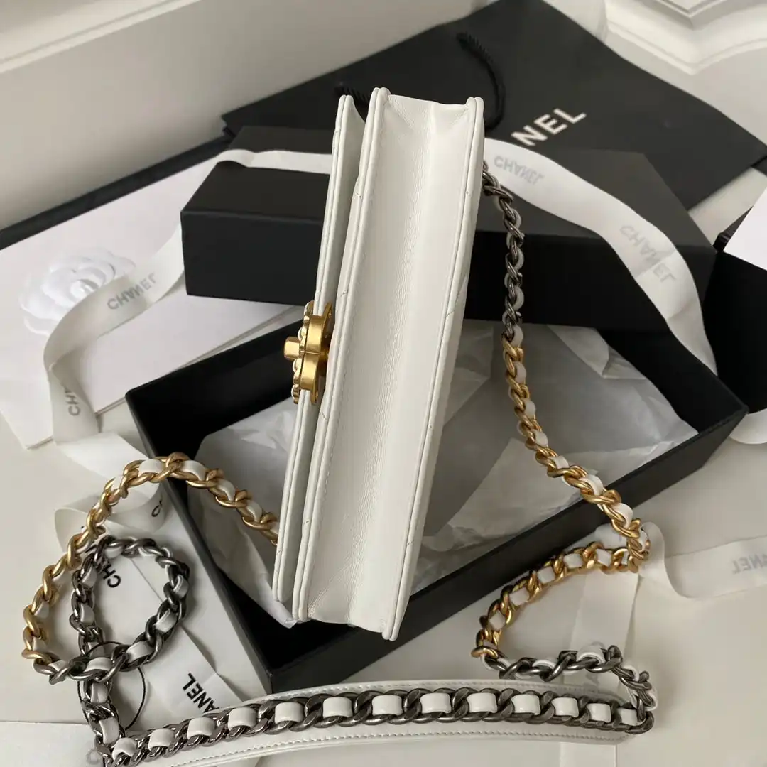 CHANEL 19 WOC 19CM WHITE LAMBSKIN GOLD