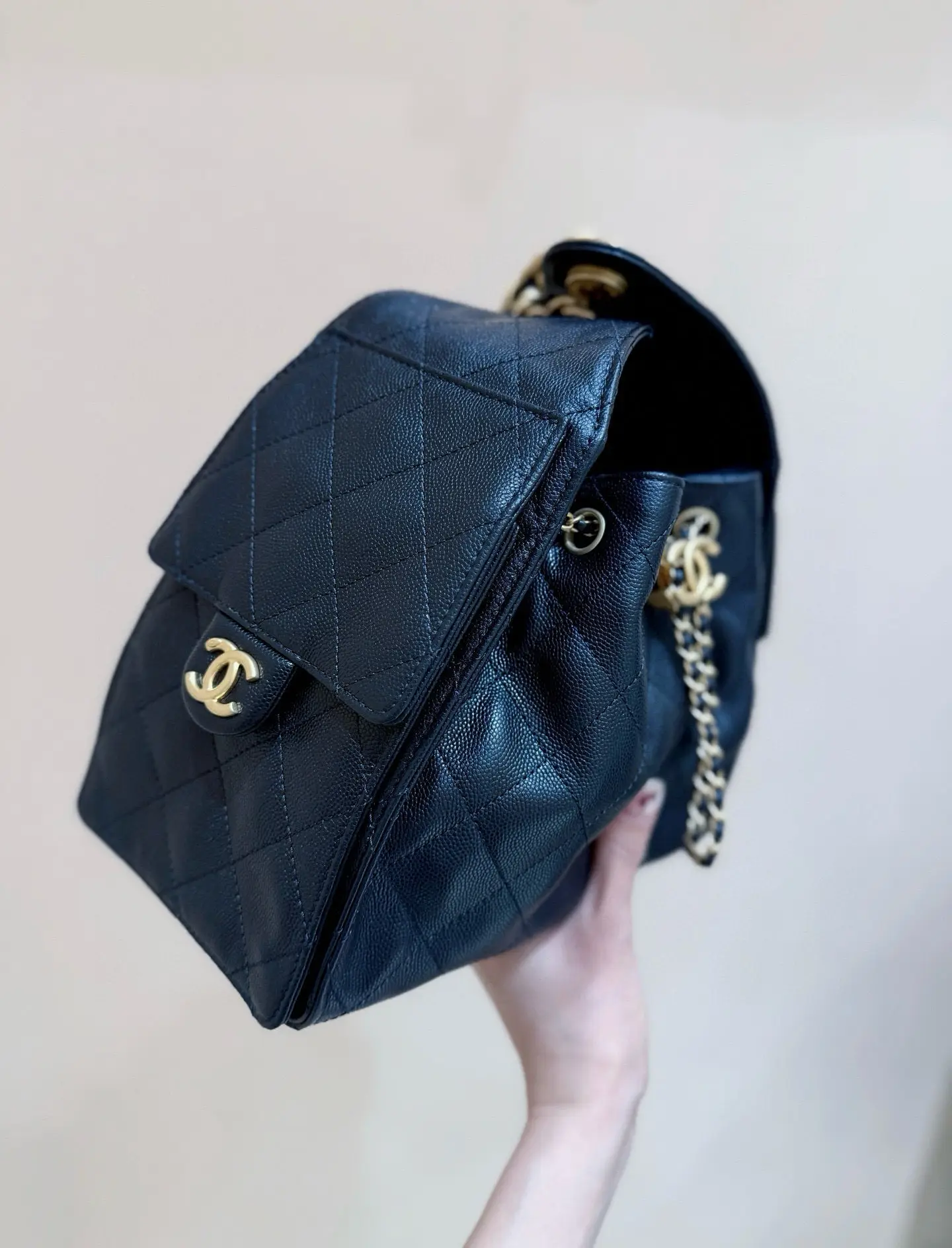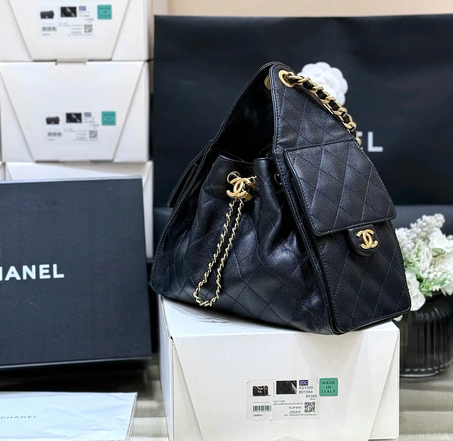 CHANEL 25 HANDBAG IN BLACK 30 GRAINED CALFSKIN GOLD HARDWARE