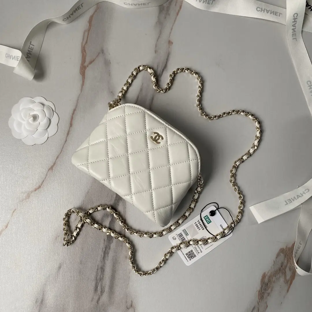 CHANEL 23C white hula hoop clutch