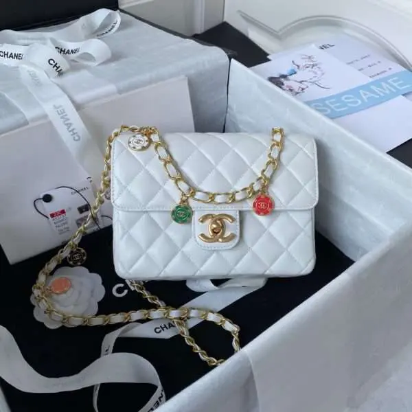 Chanel Chain Charm Smooth Leather Replica 11 Womens Handbag White 20cm