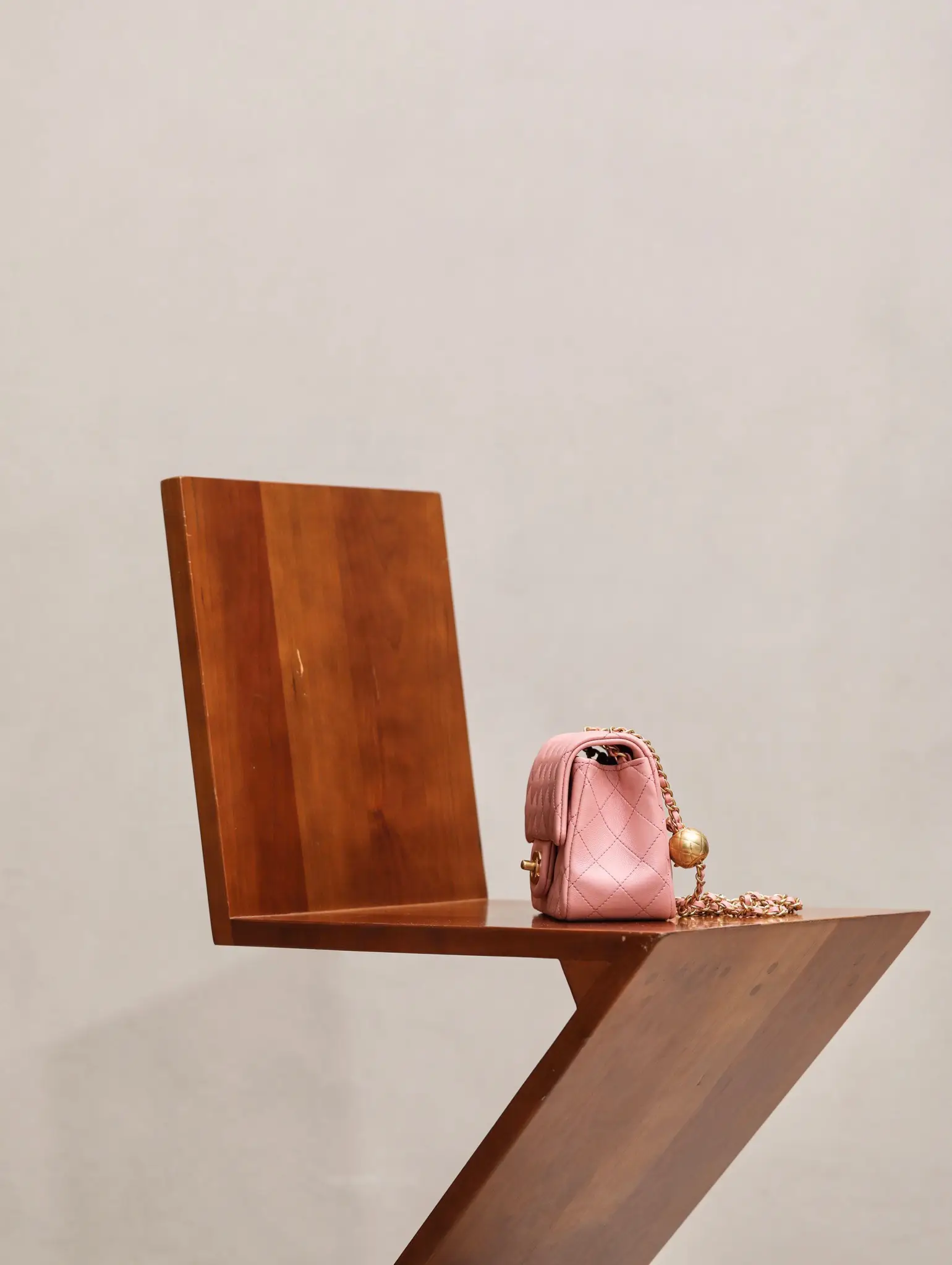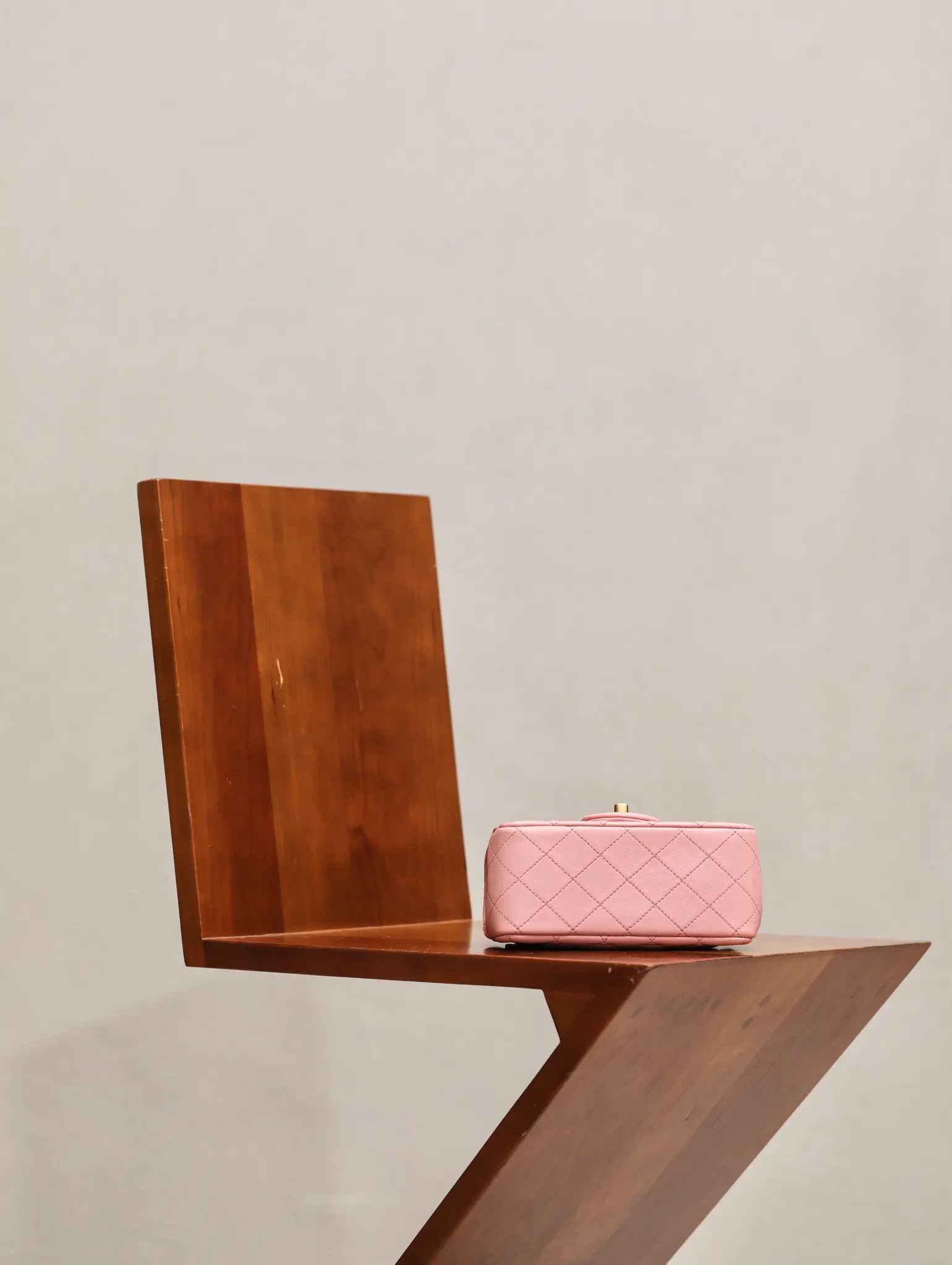 Chanel Classic Woman’s 11 Handbag Pink With Bag Handle Bell 18cm