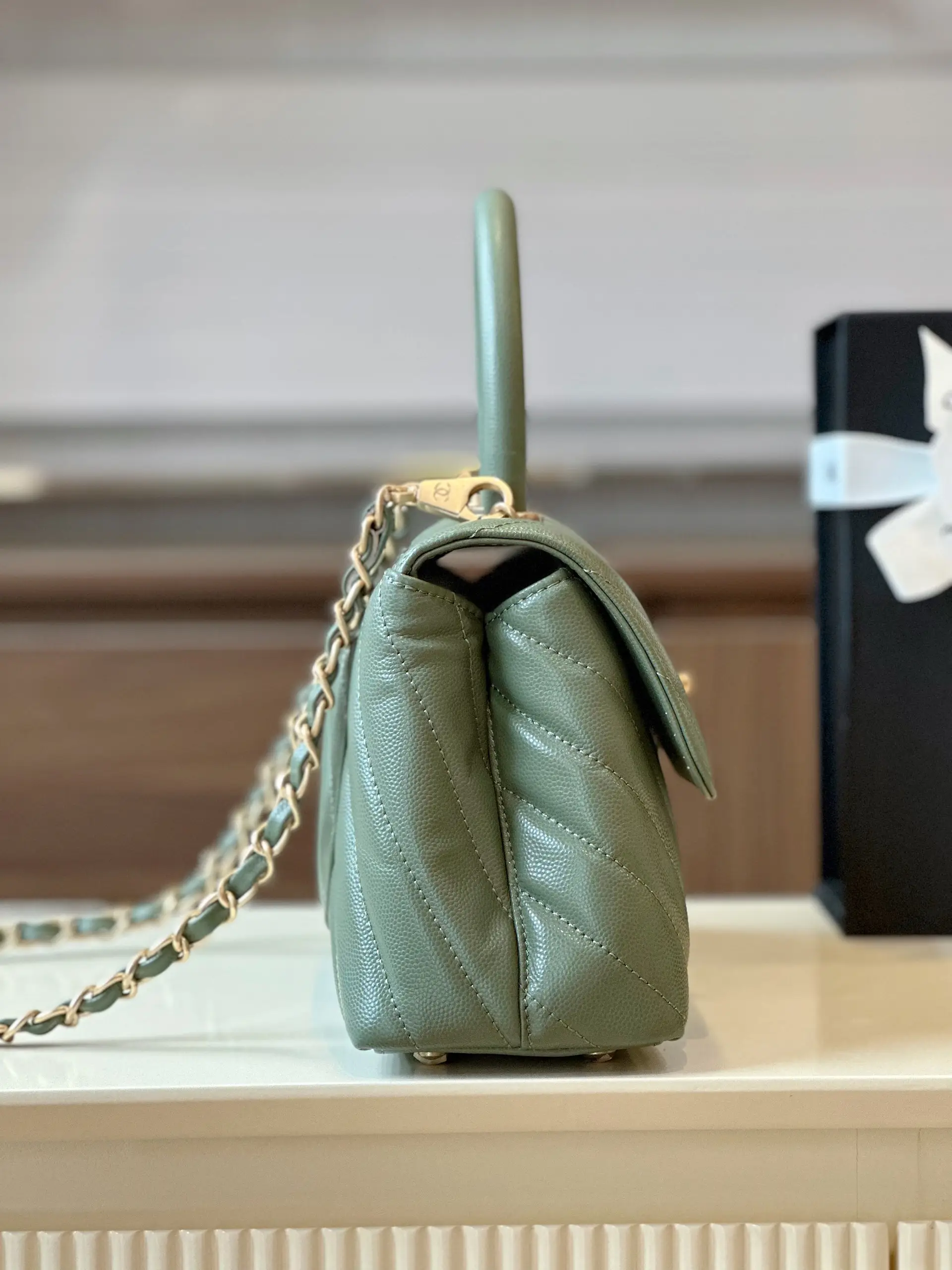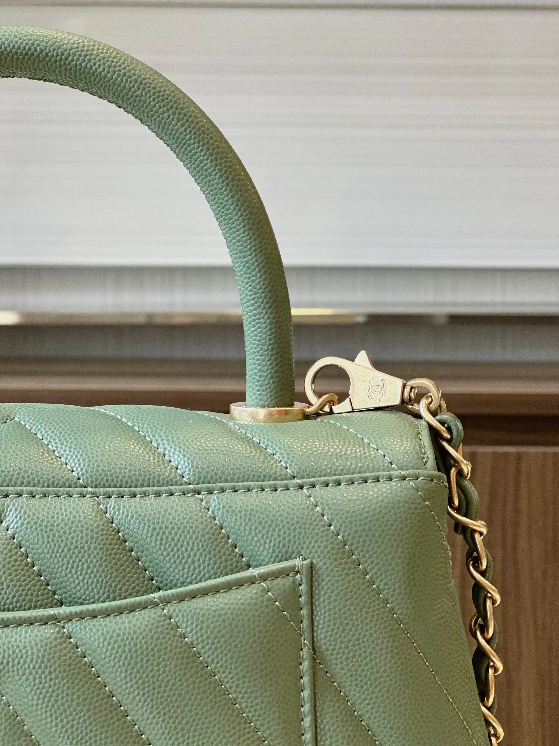 Chanel Coco V-shaped Pattern Replica 11 Handbag Green With Silver Lock 25cm