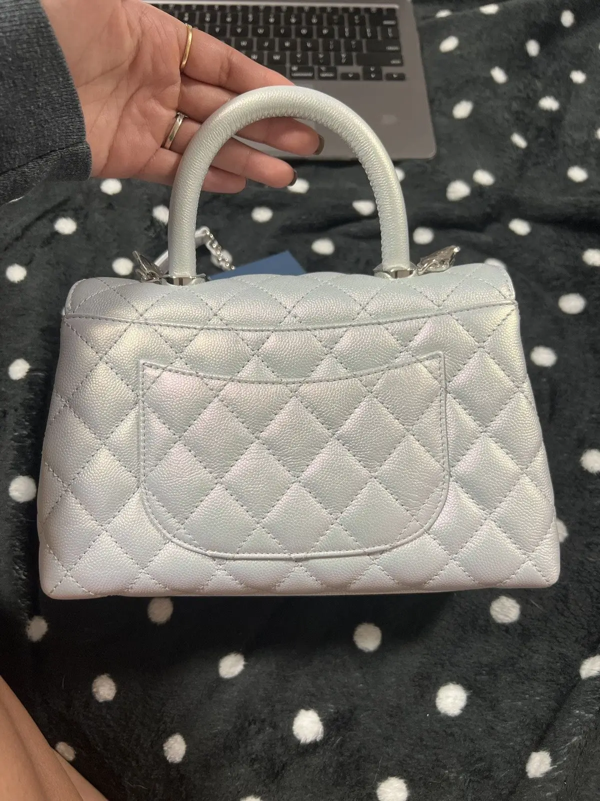 Chanel Coco Handbag Leather Light Grey Womans 23cm