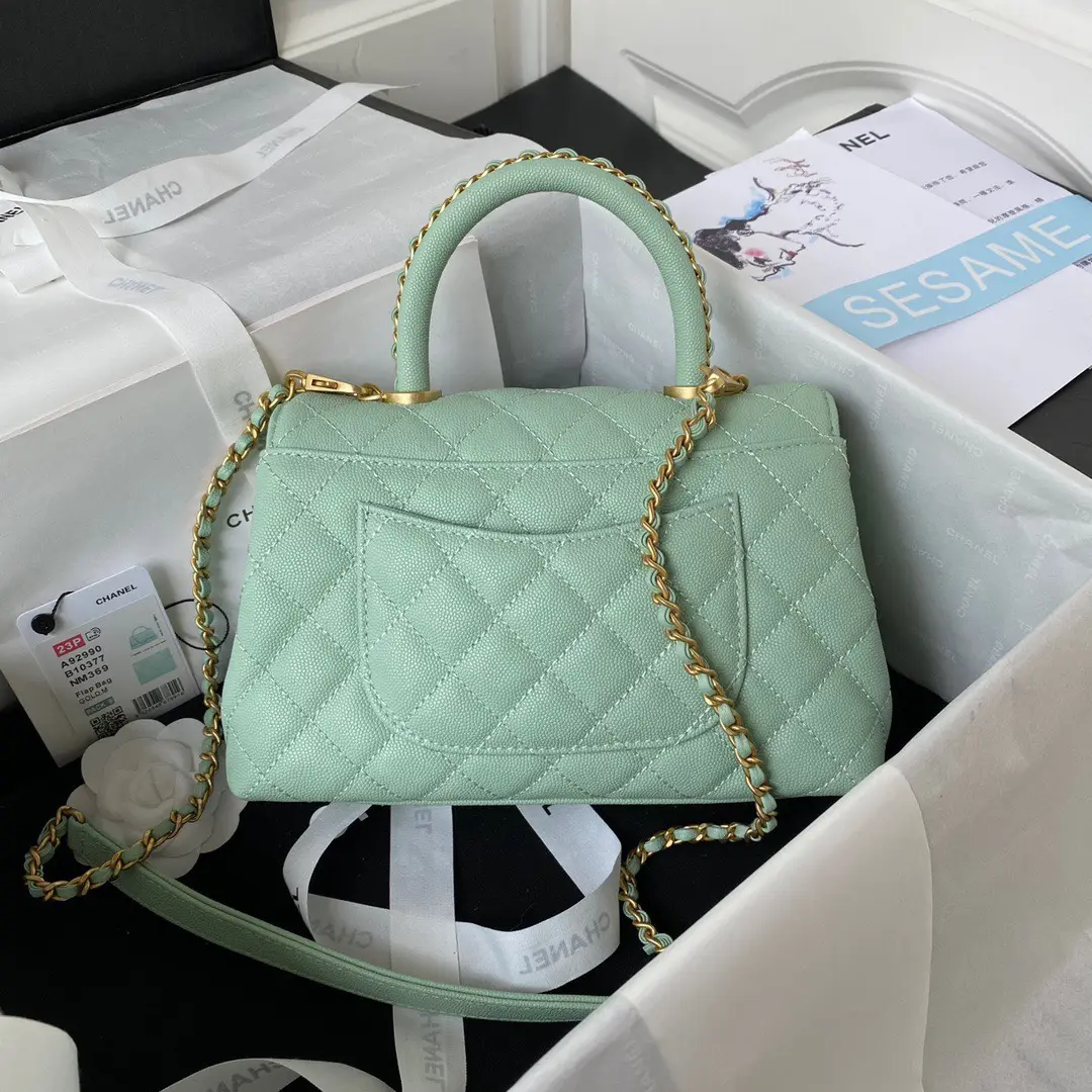 Chanel Coco Pastel Blue Handbags With Lock Gold 24cm