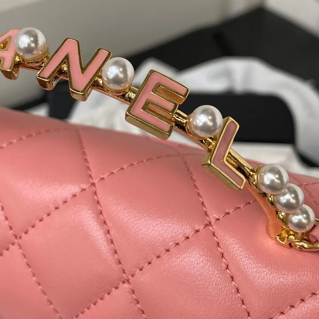 Chanel Woc Pink Handbags With Pearl Handle 11.5×14.5×5.5cm