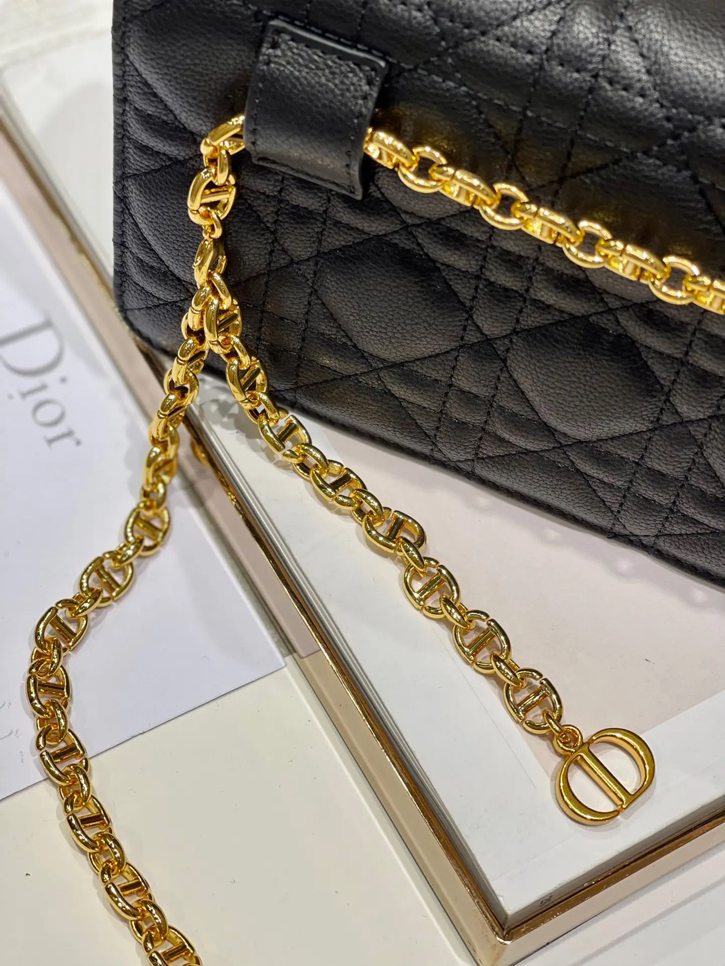 Dior Woc Women’s Black Handbag with Gold Lock 20×11.5×3.5cm