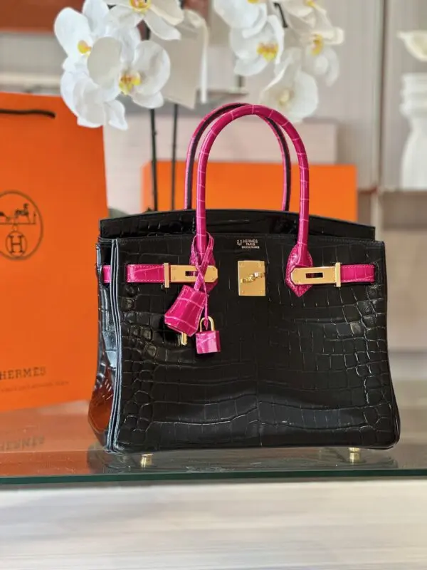 Hermes Birkin 30 Black/Pink Genuine Crocodile Leather – Custom Made