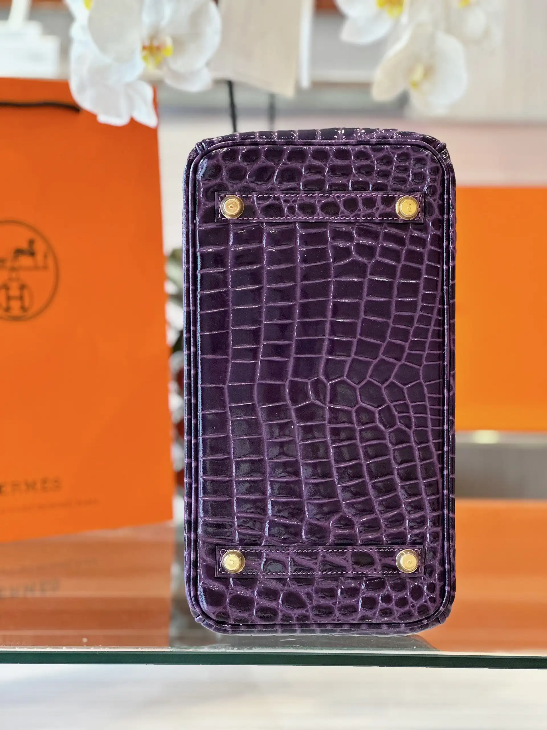 Hermes Birkin 30 Purple/Red Genuine Crocodile Leather Gold Hardware