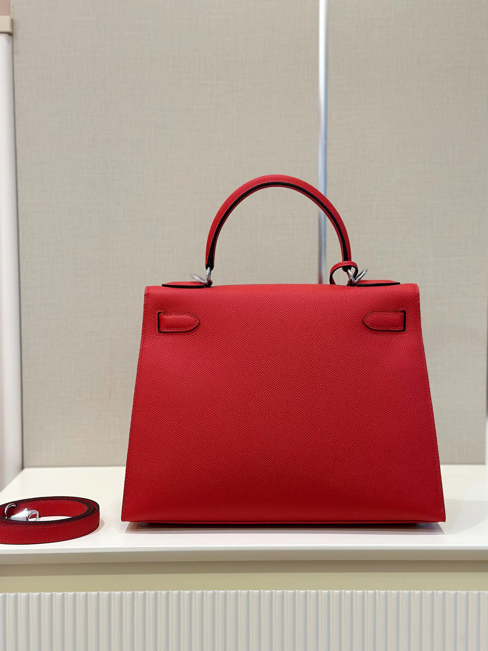 Hermes Kelly 28 Red Epsom Leather Palladium Hardware