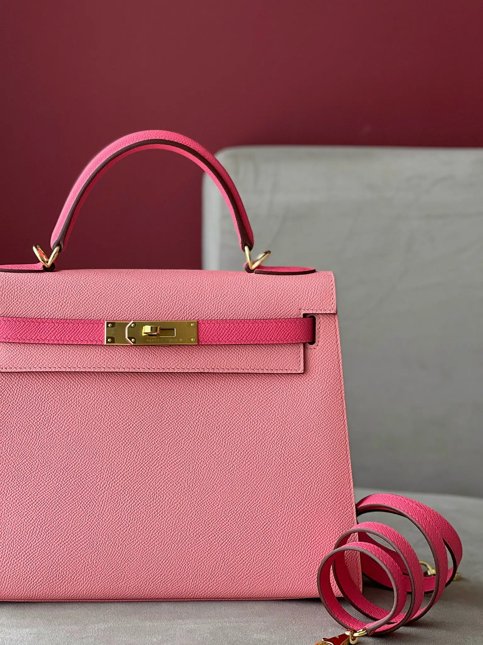 Hermes Kelly 25 Rose Sakura & Gris Perle Chèvre Epsom Leather Gold Hardware