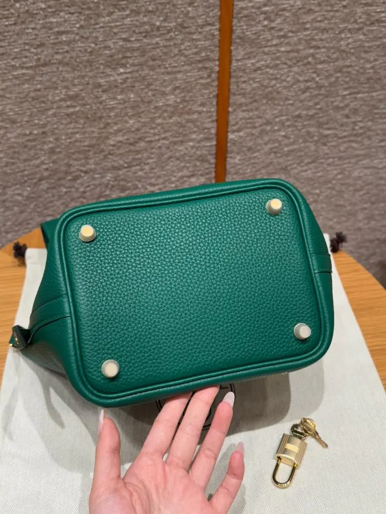 Hermes Togo leather green with gold hardware 18cm