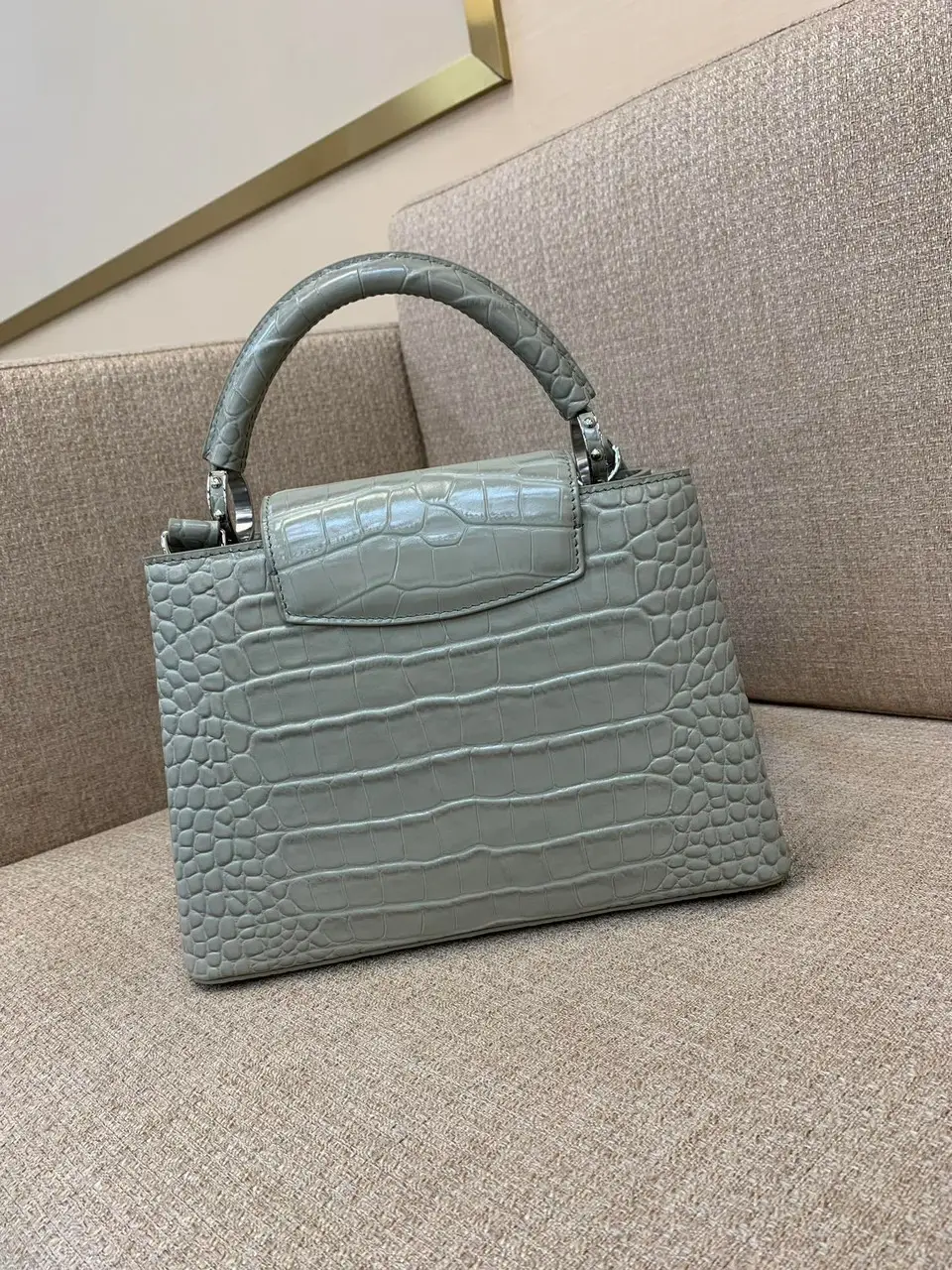 Louis Vuitton LV Capucines BB Gray Crocodile Leather Handbag Like Auth 21cm