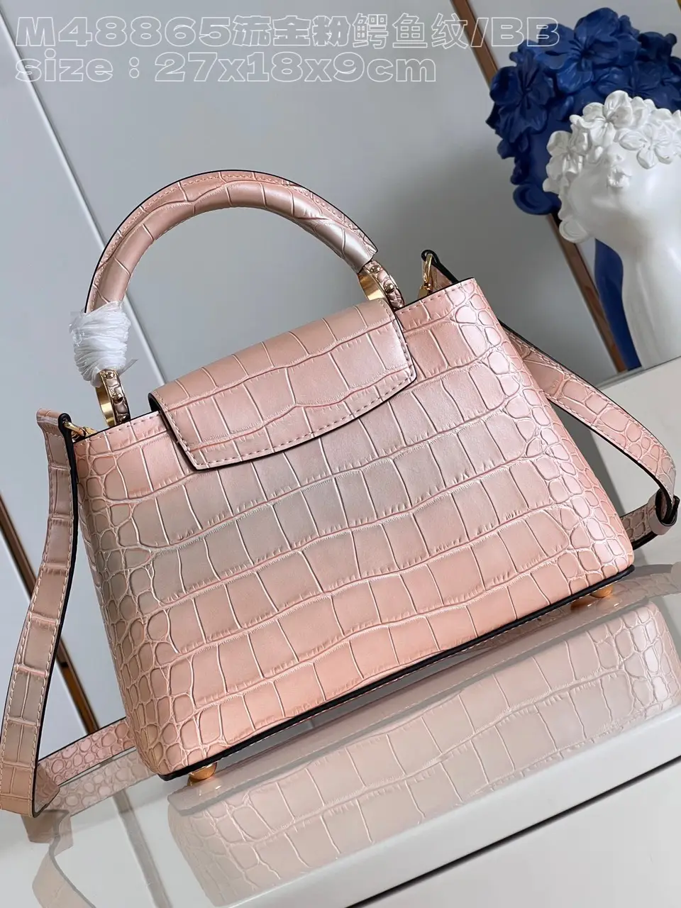 Louis Vuitton LV Capucines BB Like Auth Crocodile Leather Pink Handbags 27cm