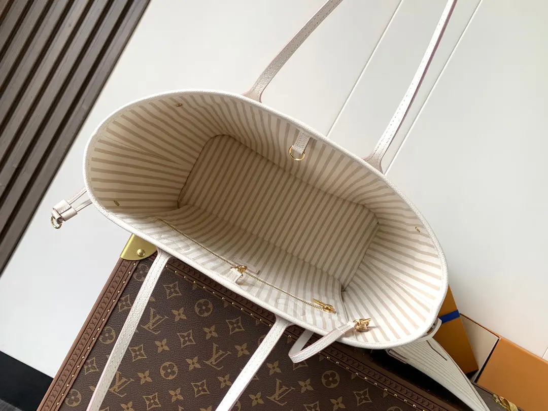 LV NEVERFULL MM TOTE BAG 32 IN WHITE MIX PINK CALFSKIN