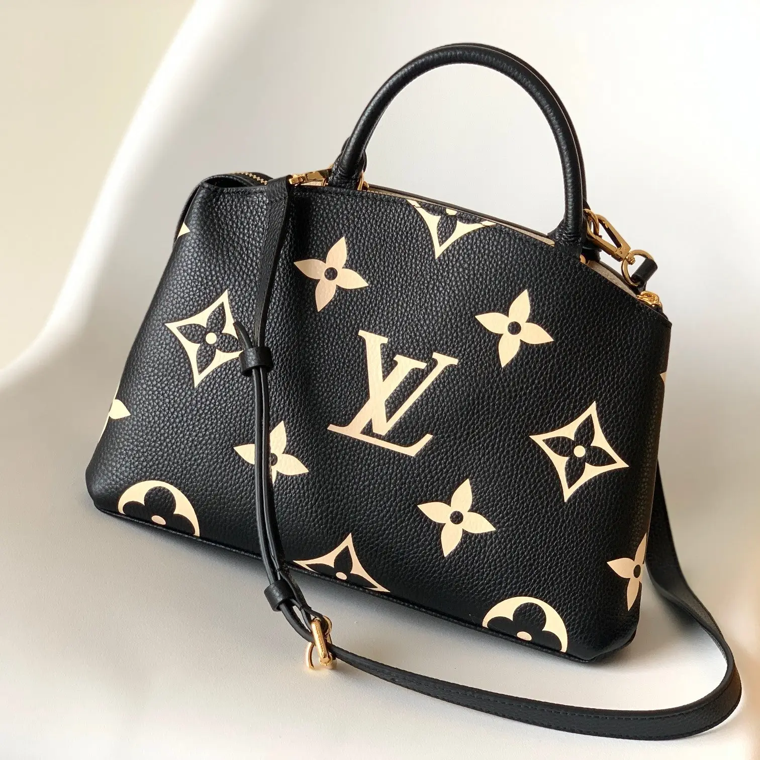 LV PETIT PALAIS PM MEDIUM SHOULDER BAG 29 IN BLACK MIX BEIGE