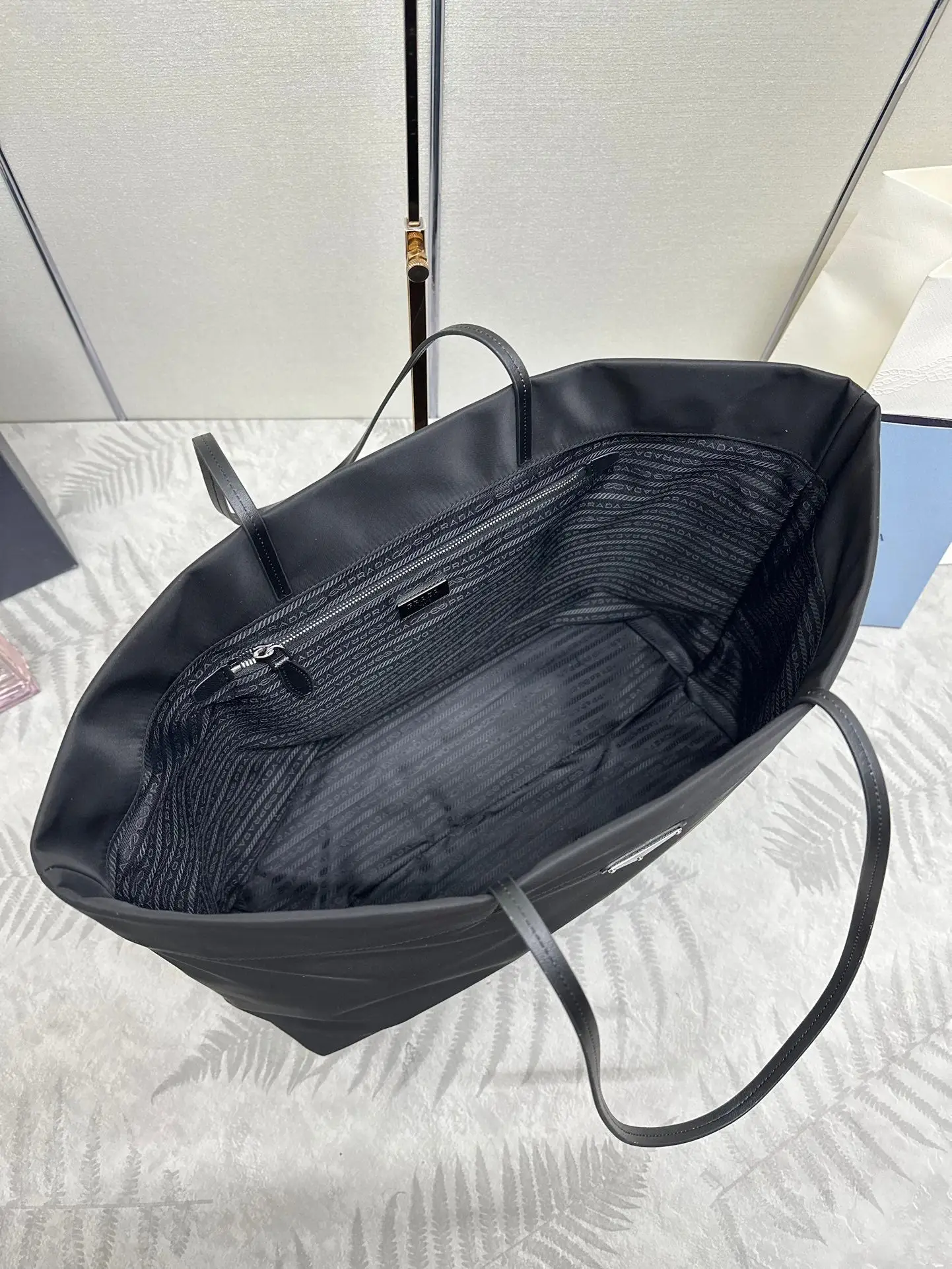 PRADA MEDIUM SHOPPING BAG 40 IN BLACK RE-NYLON FABRIC