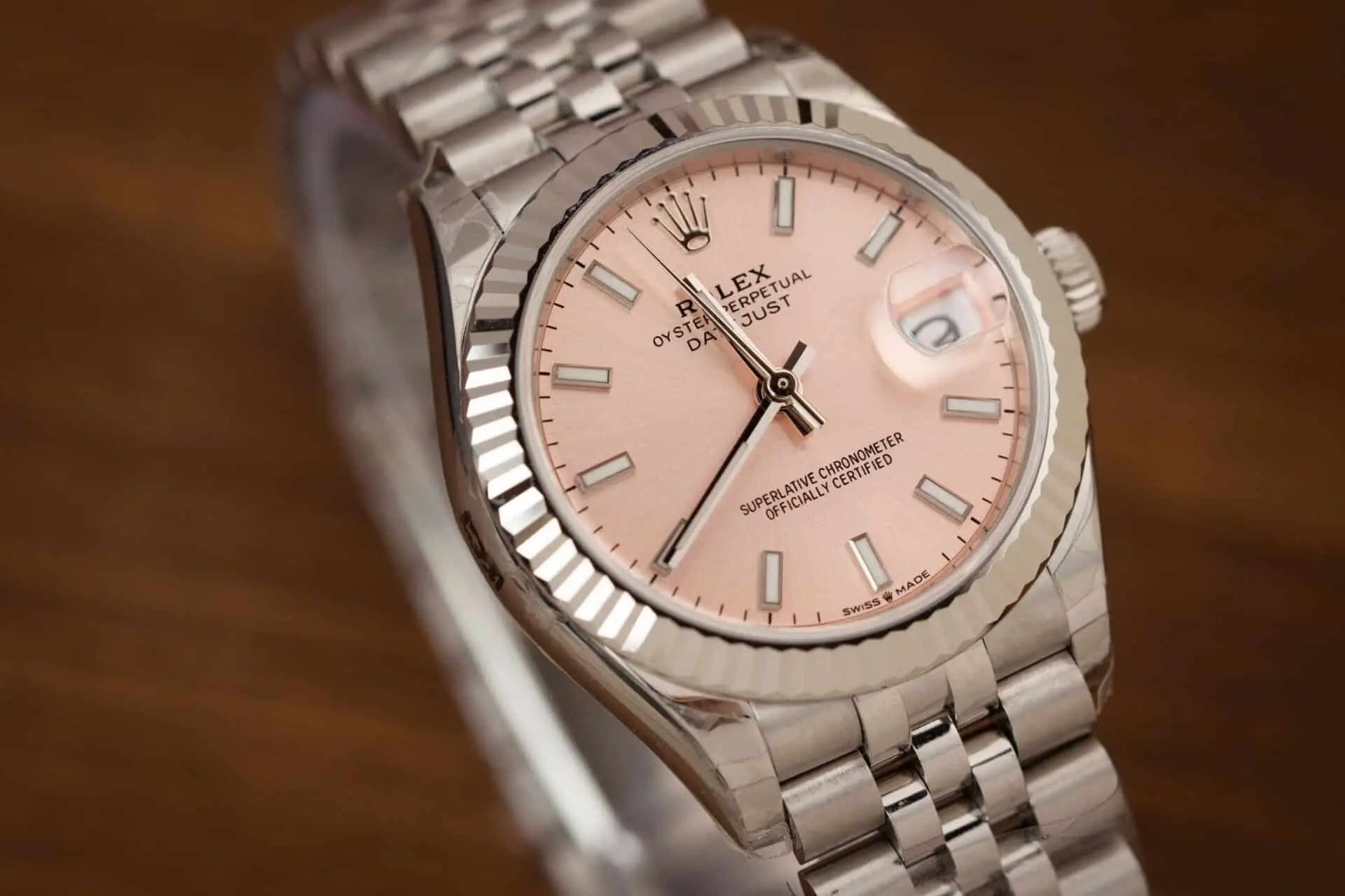 Rolex Datejust Pink Dial Luminous Hour Markers Jubilee