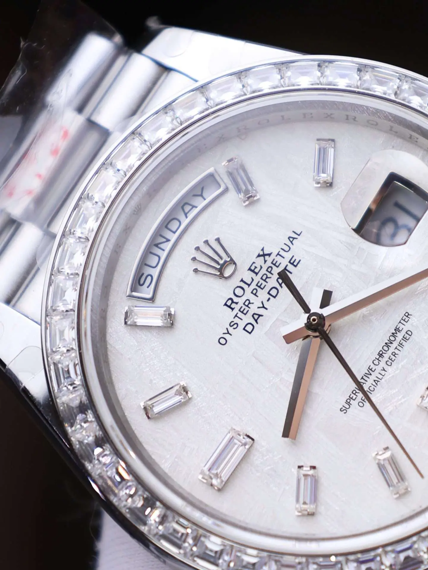 Rolex Day-Date Meteorite Dial Watch with Moissanite Baguette Diamonds + Bezel 40mm