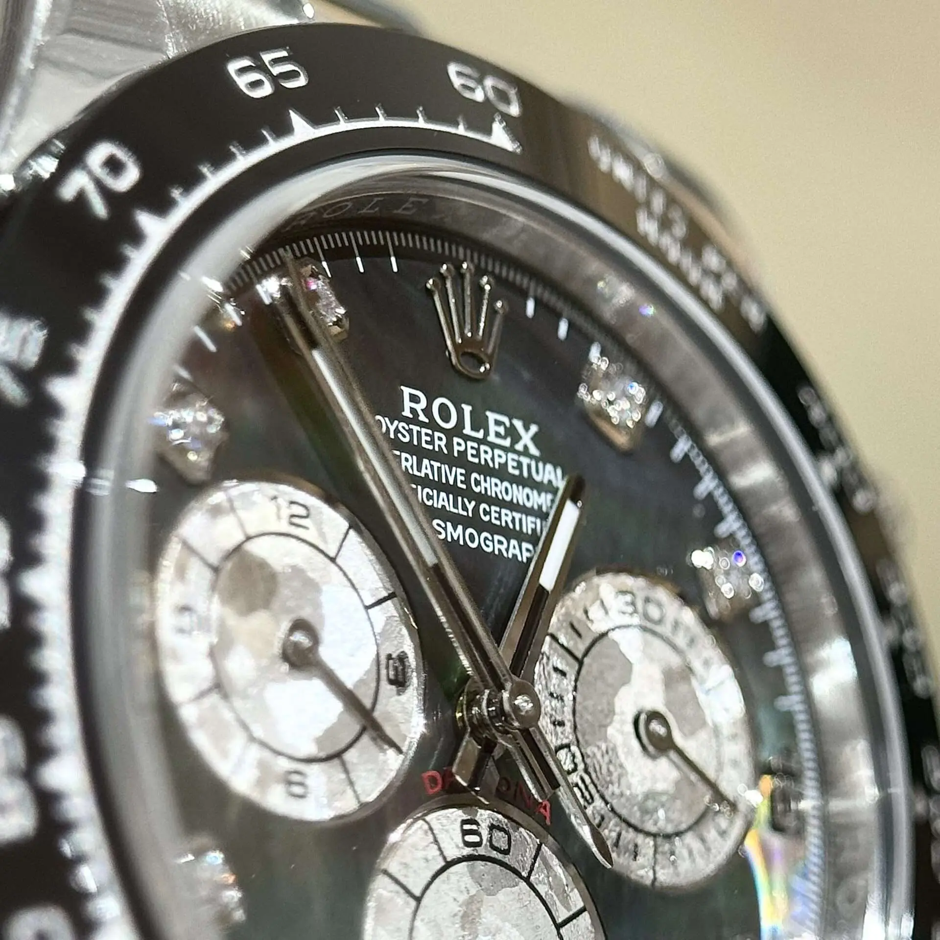 Rolex Daytona Mother of Pearl Watch with Moissanite Diamond Markers 40mm