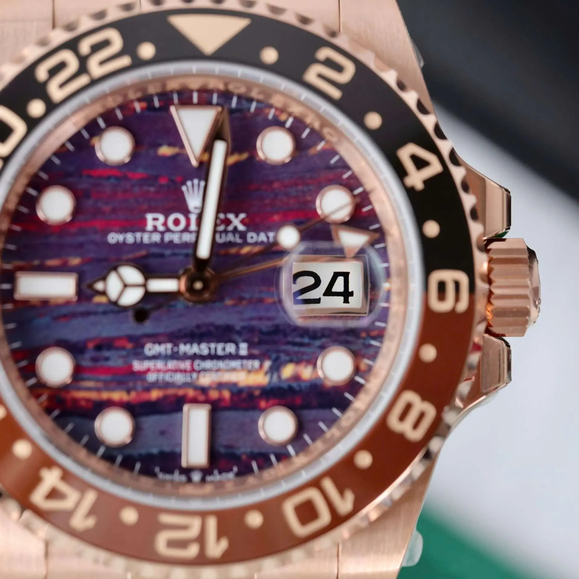 Rolex GMT-Master II 126715CHNR Rose Gold Plated Tiger Eye Dial 40mm