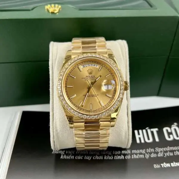 Rolex Replica 11 Watch Day-Date Gold Plated With Diamonds Bezel EW 40mm