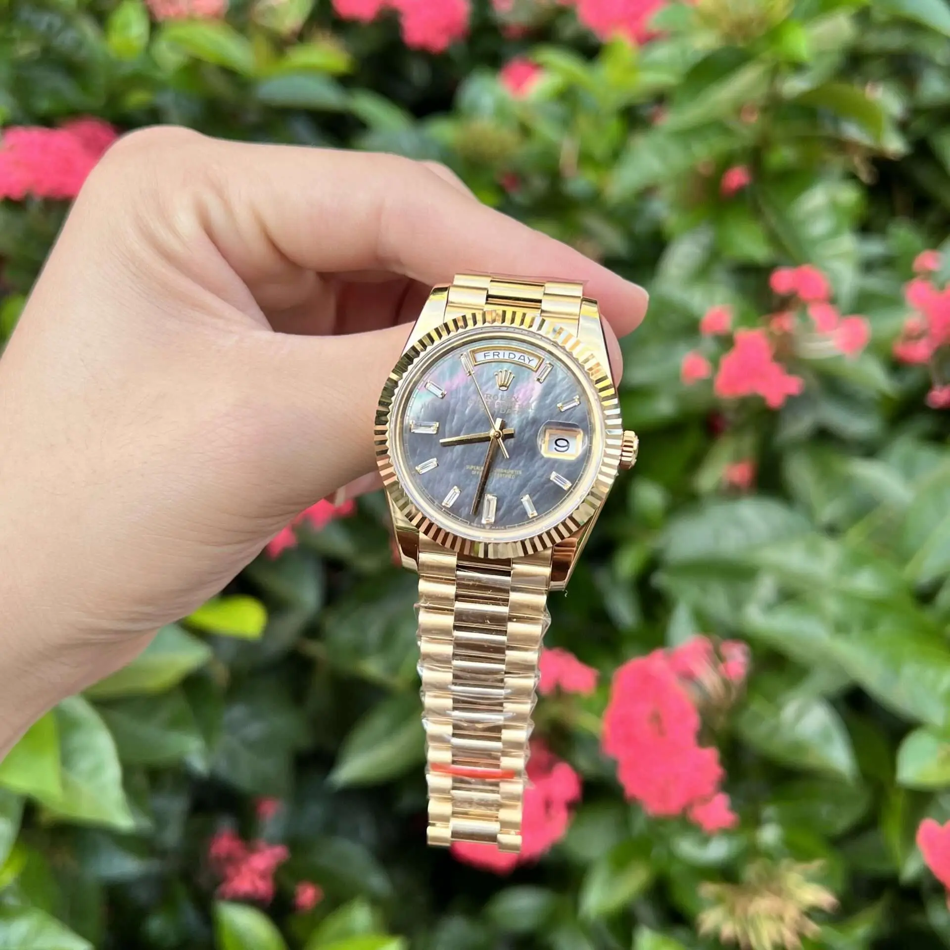 Rolex Day-Date Purple Mother of Pearl Dial Diamond Bezel Replica Watch 40mm