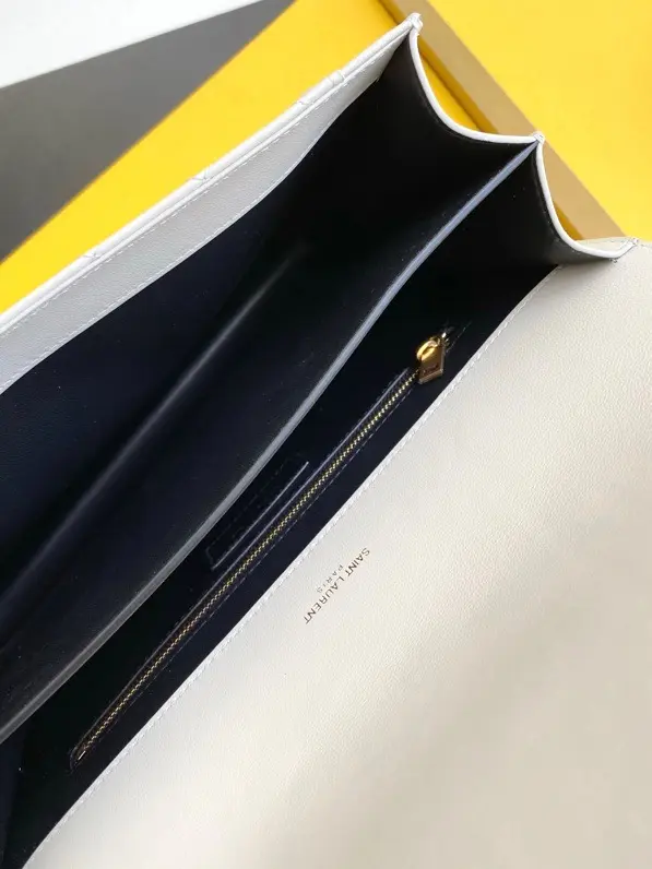 Saint Laurent Grain De Poudre Uptown Chain Wallet White