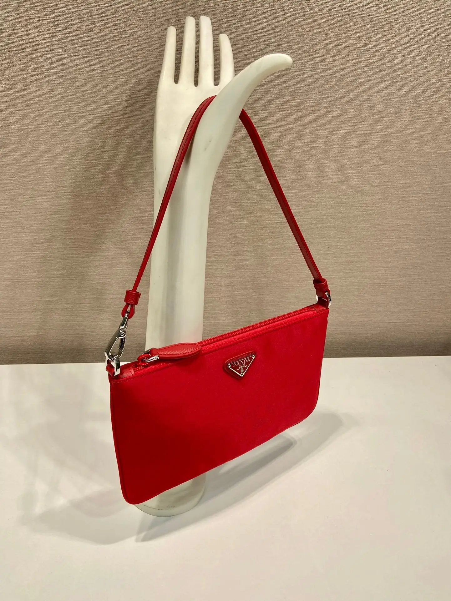 PRADA SHOULDER BAG 24 WITH TRIANGLE LOGO IN PASSION RED RE-NYLON FABRIC